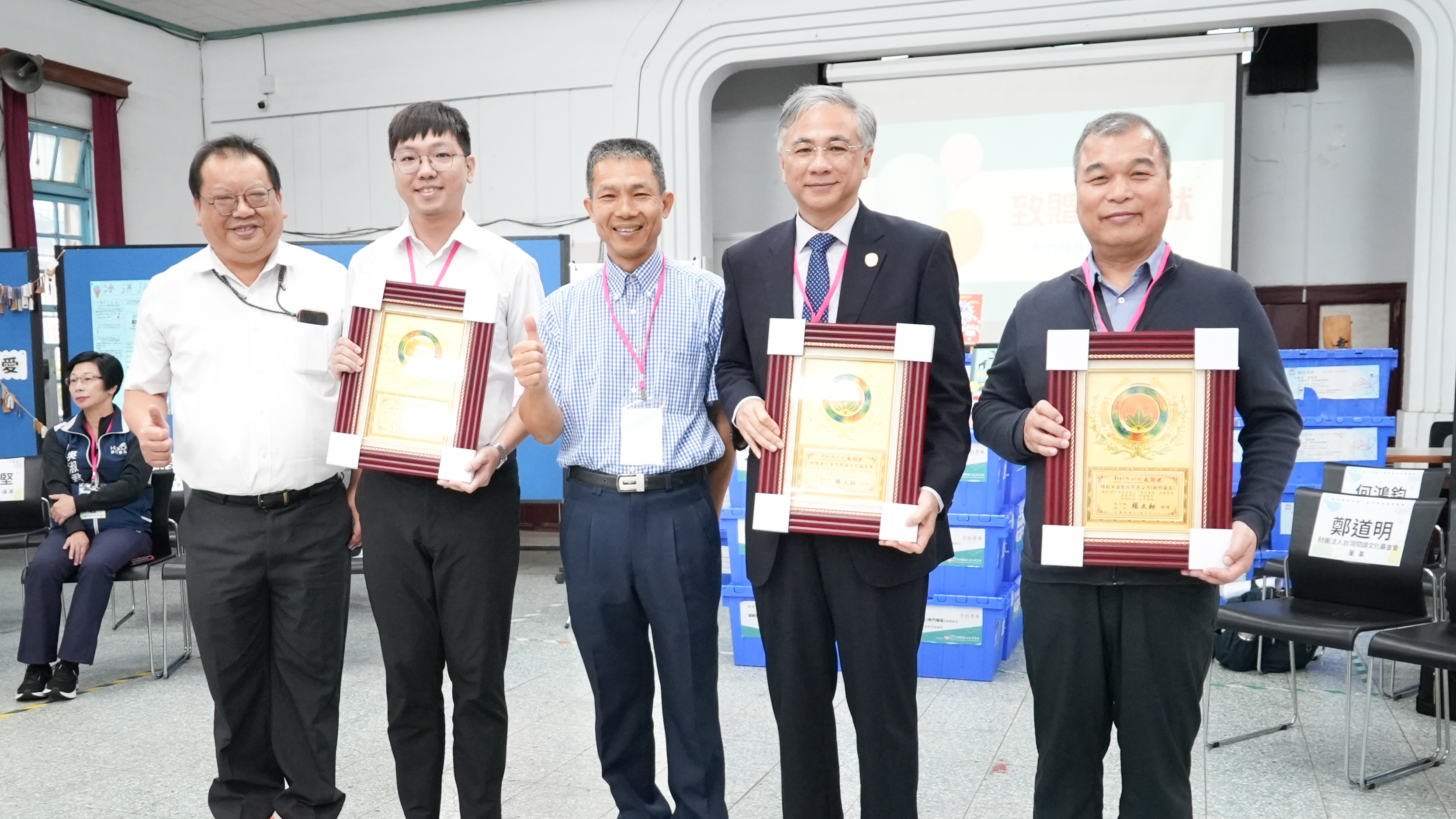 典禮現場由校方精心布置,不僅整齊陳列書箱、展示學生親手書寫的感謝卡片,